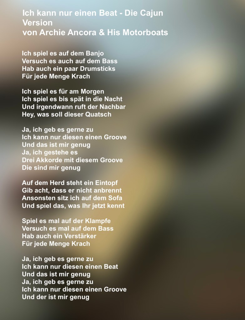 Archie ließ nicht locker: „Also, ich habe hier einen wichtigen Song zur Lage der Nation!“ Oh je, dachte ich, jetzt will er uns einen Protestsong anbieten.