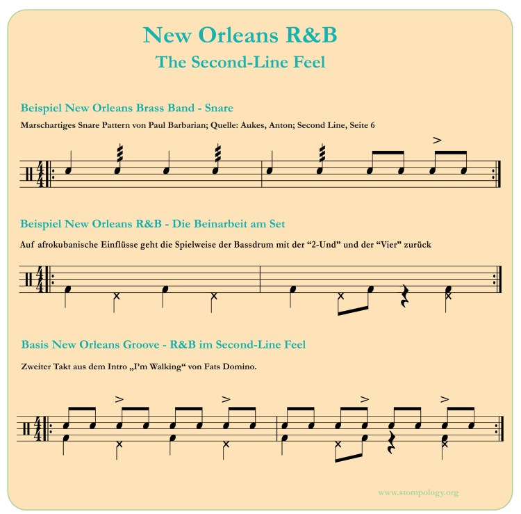 Der Klang und die Spielweise einer Second Line Figur für Basstrommel und Becken kannst Du im nachfolgenden Video anhören und anschauen.