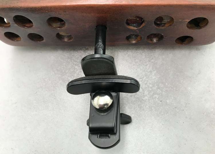 Der Klang gefällt mir: etwas hölzern-hohl mit Nachklang, nicht zu spitz und dennoch nicht dumpf. Auf der Oberfläche gespielt entsteht der typische helle „Tick“-Klang, seitlich angeschlagen bringt der Resonanzkörper des Blocks ein schönes Holz auf Holz „Tock“ hervor. Tropenhölzer haben auf Grund ihrer Faserdichte weniger Nachklang als heimische Laubhözer. Wichtig ist, dass das ausgesuchte Holz nicht zu weich ist und den Sticks standhält.