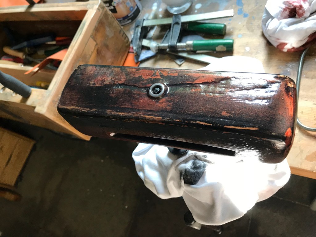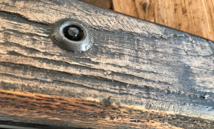 Schritt 6: Unsaubere Holznähte glätten und je nach Geschmack den Block entweder wachsen, ölen, dünn lackieren, beizen oder einfach roh lassen. In dem Beispiel wurden die Vorderseite und die Oberseite weitgehend unbehandelt gelassen und auch die Riefen im Holz nicht herausgeschliffen (Stichwort „Vintage Optik“).
