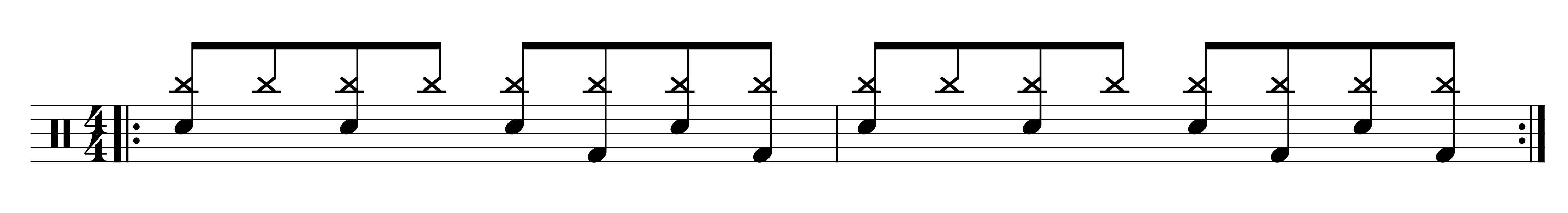 Die Besonderheit dieser Schlagfolge liegt in den stringent gleichlaut „durchgespielten“ Vierteln auf der Snare Drum sowie der sparsamen und wirkungsvollen Bassdrum zwischen den Snare-Schlägen (im Basis-Beat auf der „3-Und“ und der „4-Und“).