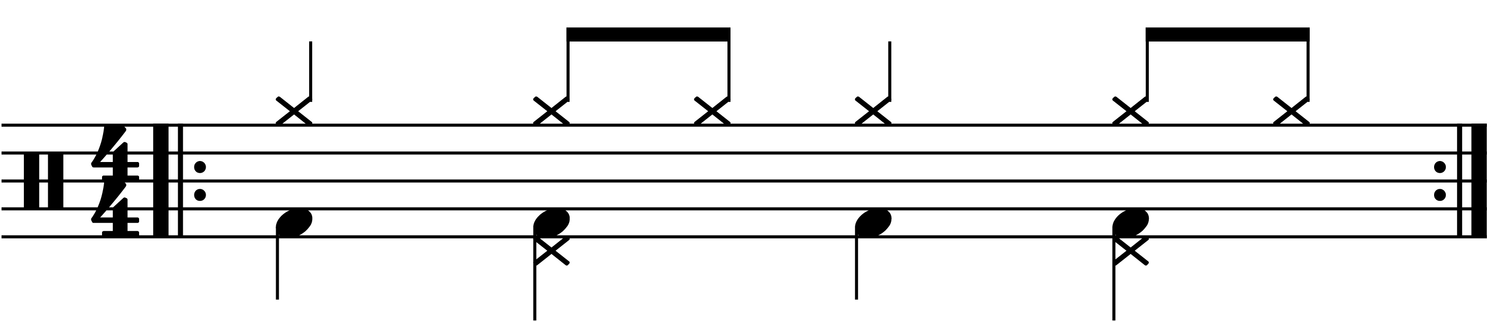 Zu Grunde liegt bei der traditionellen Spielweise der Swing Hi-Hat die übliche Swing-Becken-Figur.