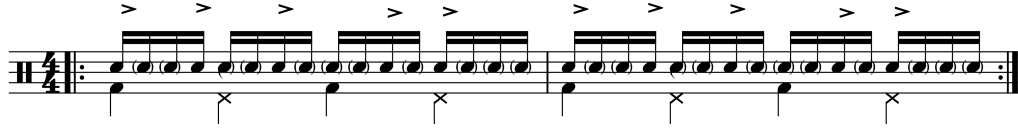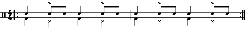 Abweichend von der anfangs gezeigten Notation zeigt die nachfolgende Variante Offbeat-Akzente. Der Groove wird damit sehr viel lebenändiger und er bekommt einen afrokubanisches Einschlag.