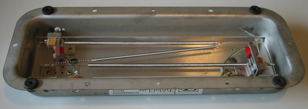 Bildnachweis zu (1) Halltank-Innenleben: Quelle Wikipedia/Wikimedia; Bildautor/Bildautorin: Grebe, Lizenz: CC BY-SA 3.0; Titel des Werkes: „Geöffnetes Gerät zeigt die Mechanik“; Bildunterschrift bei wikipedia: O. C. Electronics, inc. Folded Line reverberation device Manufactured by beautiful girls in Milton, Wis. under controlled atmosphere conditions. U.S. pat. 3,363,202 / Canadian pat. 825,330 Type 60