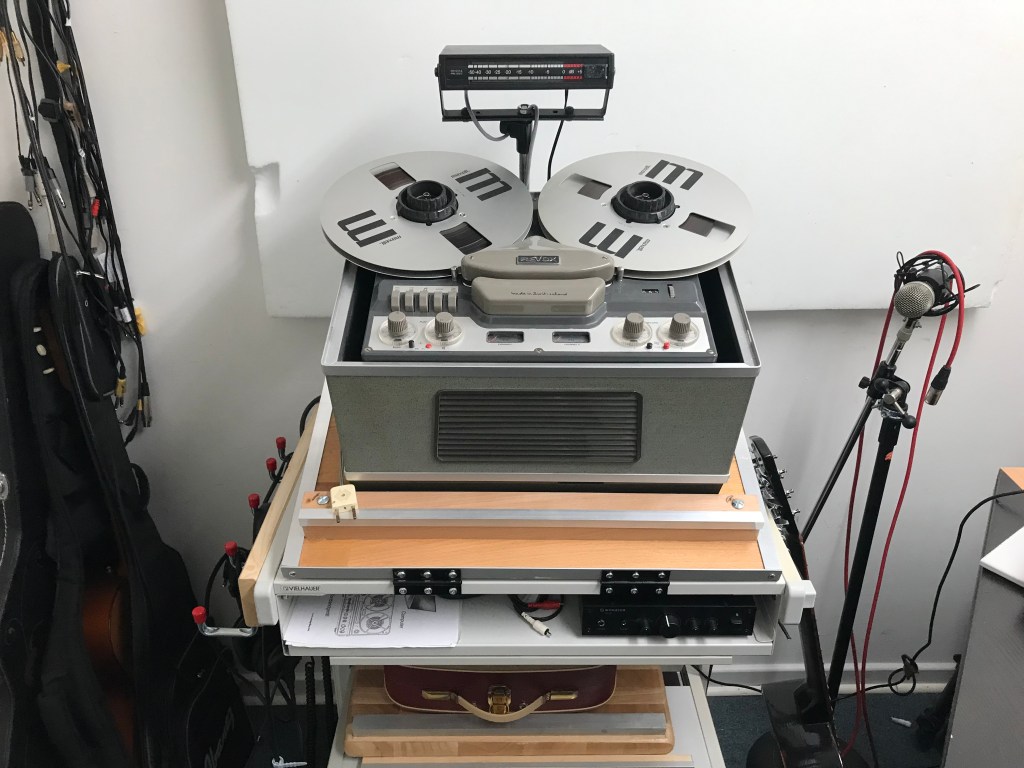Inzwischen hat der Oldtimer im kleinen Stompology-Studio seinen festen Platz gefunden.Das DIN-VU-Meter über den Spulen des Bandgerätes dient zur Anzeige des Ausgangspegels eines Interfaces oder Mischpults.