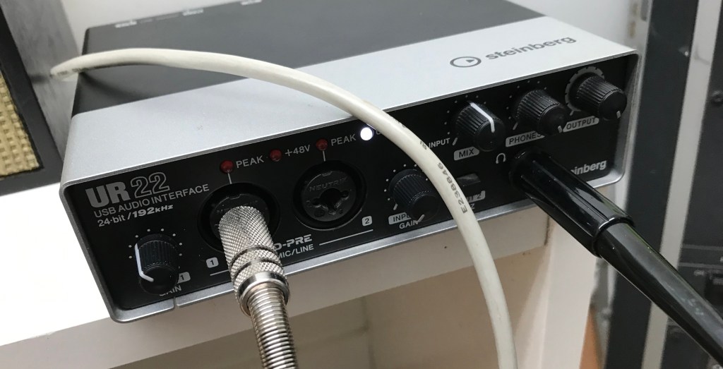 Für den Aufnahmepegel des Computers wird der Input-Regler („Gain“) des Verstärkers des Interface genutzt. Im Zusammenspiel mit der Pegeleinstellung des Röhrengerätes und der des Interface lassen sich interessante Sounds erzeugen.