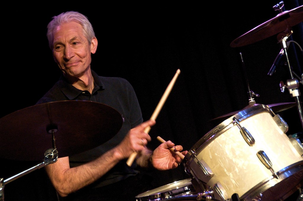 Charlie Watts: Titel des Bildes/Datei: Charlie Watts on drums The ABC & D of Boogie Woogie (2010).jpg; Original Bildunterschrift: Charlie Watts drums for his second band besides The Rolling Stones, The ABC&D of Boogie Woogie, in the Casino in Herisau, Switzerland on January 13th, 2010. Quelle: Poiseon Bild & Text (press photo by a photographer of the consulting company Poiseon AG in St. Gallen, Switzerland) Ursprungsquelle: https://www.flickr.com/photos/39023078@N07/4274215482 via wikimedia; Autor: Poiseon Bild & Text, Lizenz via wikimedia: Creative Commons Attribution 2.0