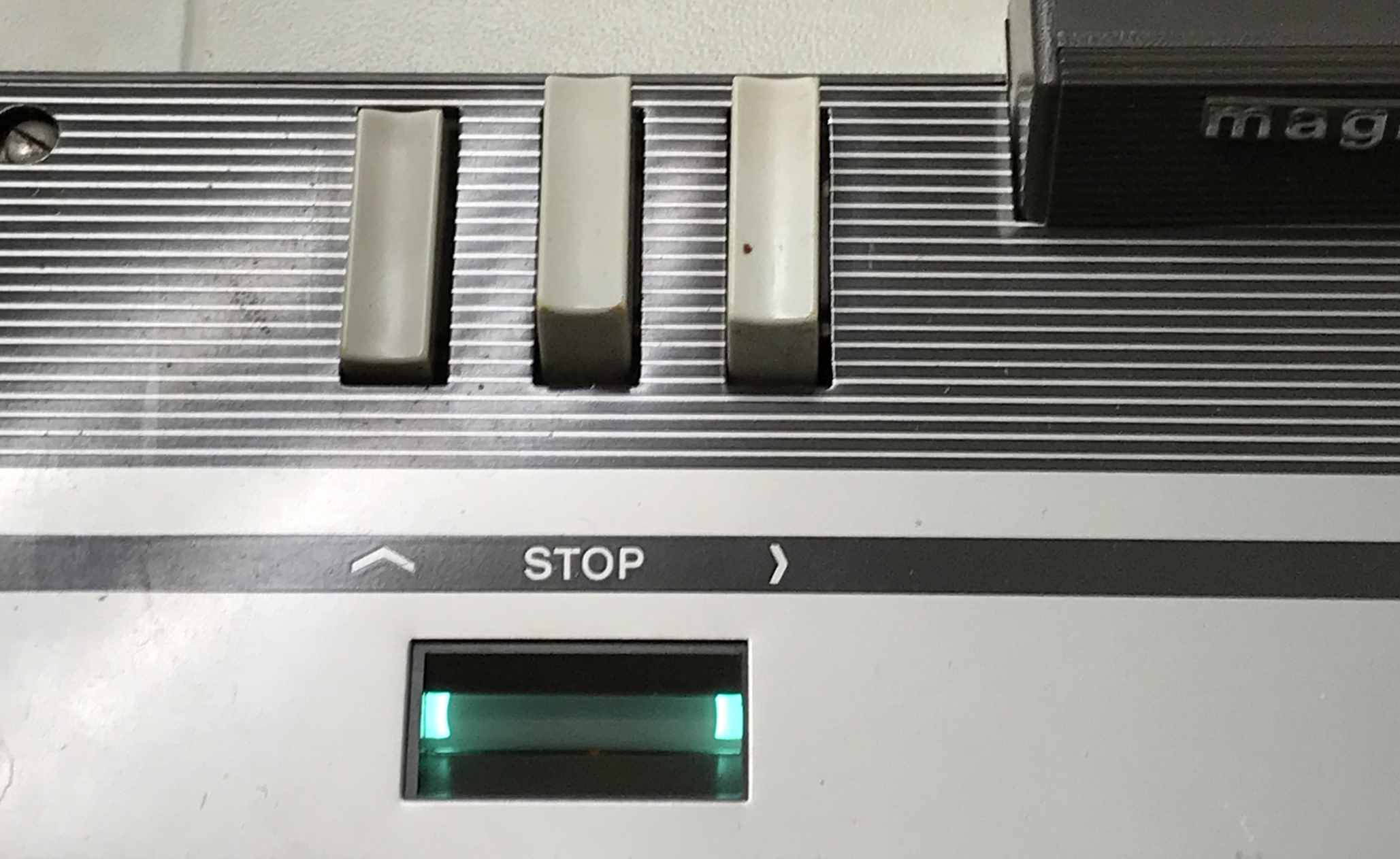 Das Magnetophon AutomatikII schaltet sich, vom Werk aus so eingerichtet, mit der Verbindung zum Netz ein. Wird die Automatikaufnahmetaste (links im Bild) gedrückt, starten der Transportmotor und die Aufnahme mittels Aussteuerungsautomatik. In der Modifikation wurde der für den zu erzielenden Effekt nicht notwendige Bandtransport stillgelegt. Das „magische Band“ wurde so umfunktioniert, dass es bei relativ hohem Ausgangspegel reagiert. Es dient als Kontroll-Leuchte zur Überprüfung der Funktion des Gerätes.
