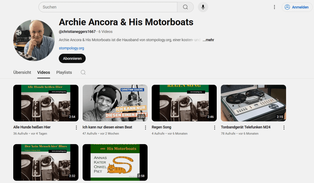 Im Laufe der Beitragsproduktion für stopology.org sind Songs zur Veranschaulichung und zur Umsetzung der Theorie in die Praxis entstanden. Diese Songs von Christian Eggers werden unter dem „Künstlernamen“ Archie Ancora & His Motorboats als Teil der Blog-Inhalte veröffentlicht.